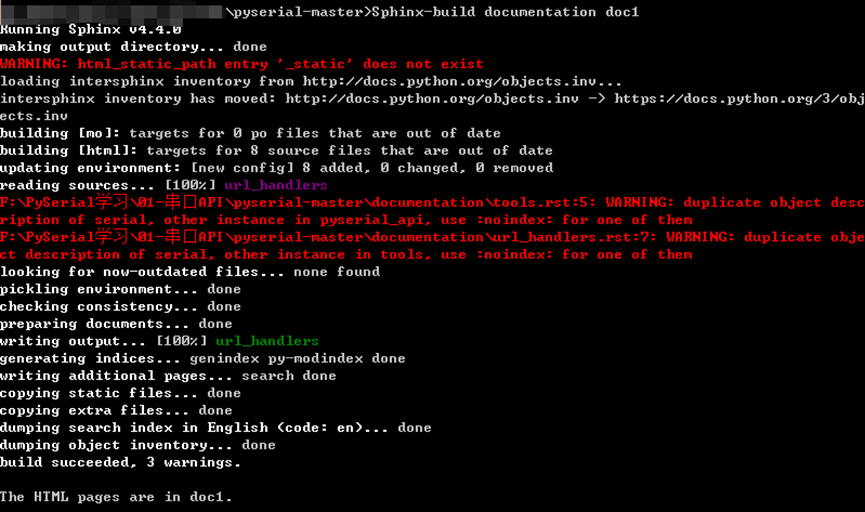 ②    使用build命令将rst文件输出为html文件