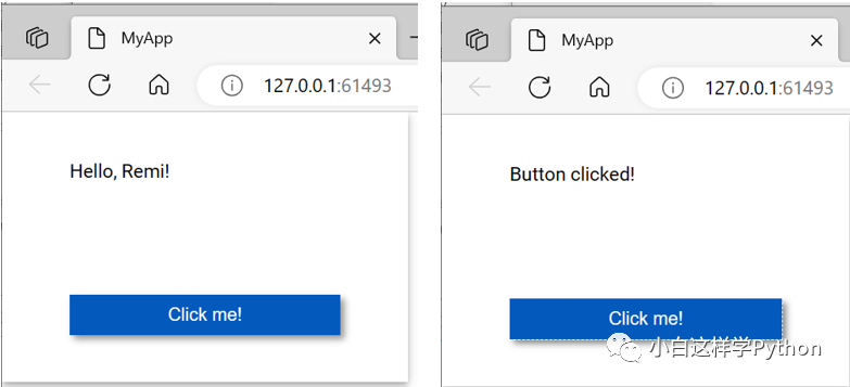 运行以上代码后,Remi会自动启动一个Web服务器,并在浏览器中显示您的GUI应用程序。您可以通过访问http://localhost:8081来访问应用程序。